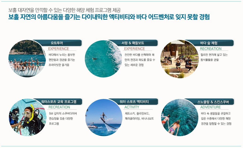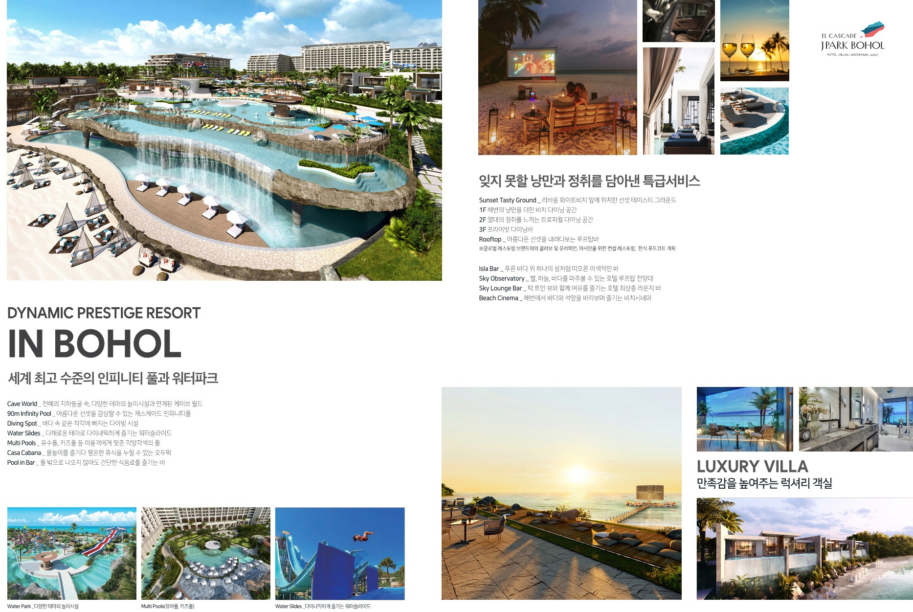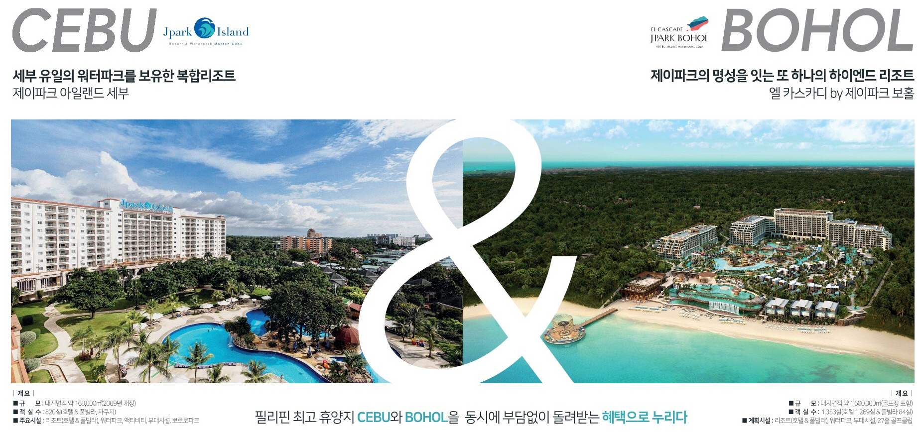 제이파크 보홀&세부 리조트는 동남아시아 3대 리조트로 필리핀 최대 규모의 워터파크와 보호홀섬에 처음 들어서는 27개 홀 골프장, 호텔, 풀빌라등으로 구성되어 2026년 10월에 준공 예정입니다.
