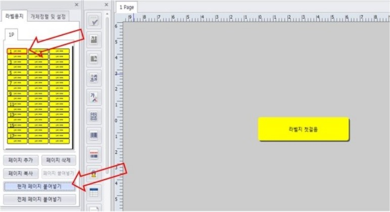 내용으로 전체 라벨지에 같은 내용을 만들 수 있습니다.